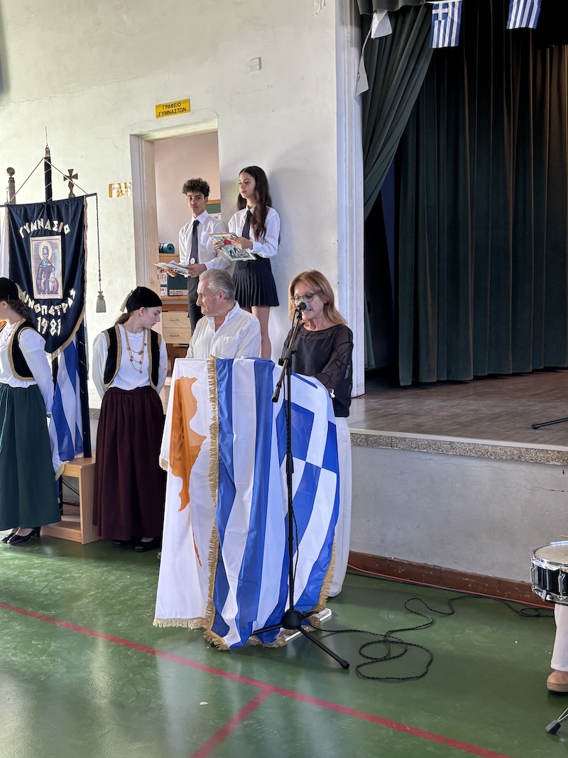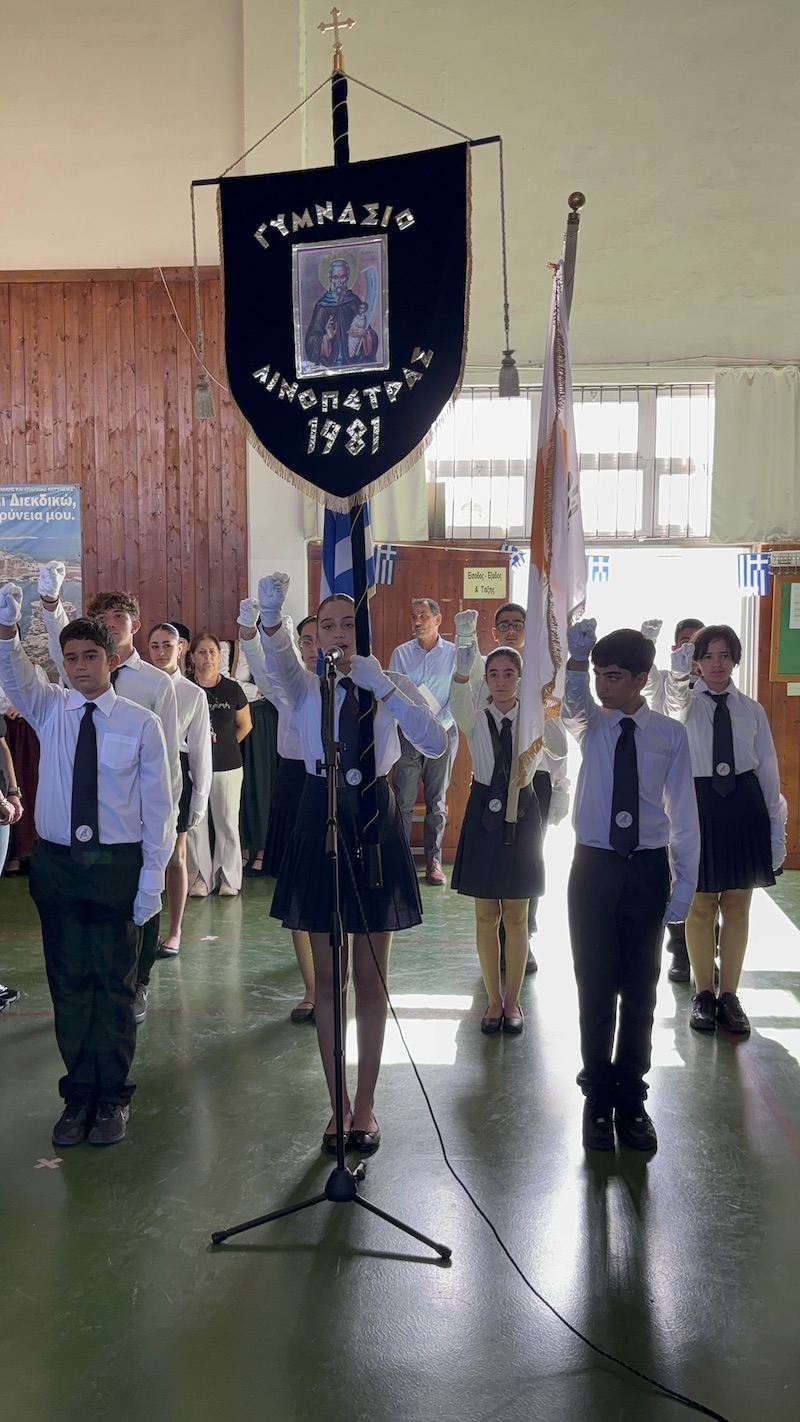 Το σχολείο μας τίμησε τη Γιορτή της Σημαίας και της Εθνικής Επετείου της 28ης Οκτωβρίου 1940, την Παρασκευή, 24 Οκτωβρίου. Η εκδήλωση πραγματοποιήθηκε , στην παρουσία των μαθητών και μαθητριών μας που ήταν οι κύριοι συντελεστές , των συναδέλφων /ισσών καθώς και των προσκεκλημένων, που μας τίμησαν με την παρουσία τους. Η εκδήλωση άρχισε με την πρόσκληση και την ανακήρυξη των σημαιοφόρων και παραστατών από τον Β.Δ.Α΄ κ. Παντελή Νικολαΐδη. Η Διευθύντρια του Σχολείου κ. Ελένη Αδάμου προσφώνησε το Άγημα και παρέδωσε τα λάβαρα και τις σημαίες στους σημαιοφόρους, επεξηγώντας τη σημασία τους. Ακολούθησε η ορκωμοσία και η τιμητική περιφορά του λαβάρου και των σημαιών. Τα μηνύματα της ημέρας δόθηκαν με το φιλολογικό και καλλιτεχνικό μέρος που ετοιμάστηκε. Συγχαρητήρια στα παιδιά που διακρίθηκαν σε επίδοση και ήθος και αποτελούν το Άγημα του Γυμνασίου μας .Συγχαρητήρια σε όλους τους συμμετέχοντες, μαθήτριες, μαθητές, εκπαιδευτικούς που συνέβαλαν στην πραγματοποίηση της όλης εκδήλωσης. Η συνεργασία και η ομαδικότητα συνέβαλαν στην επιτυχία της εκδήλωσης. Ιδιαίτερες ευχαριστίες στους προσκεκλημένους που μας τίμησαν με την παρουσία τους.